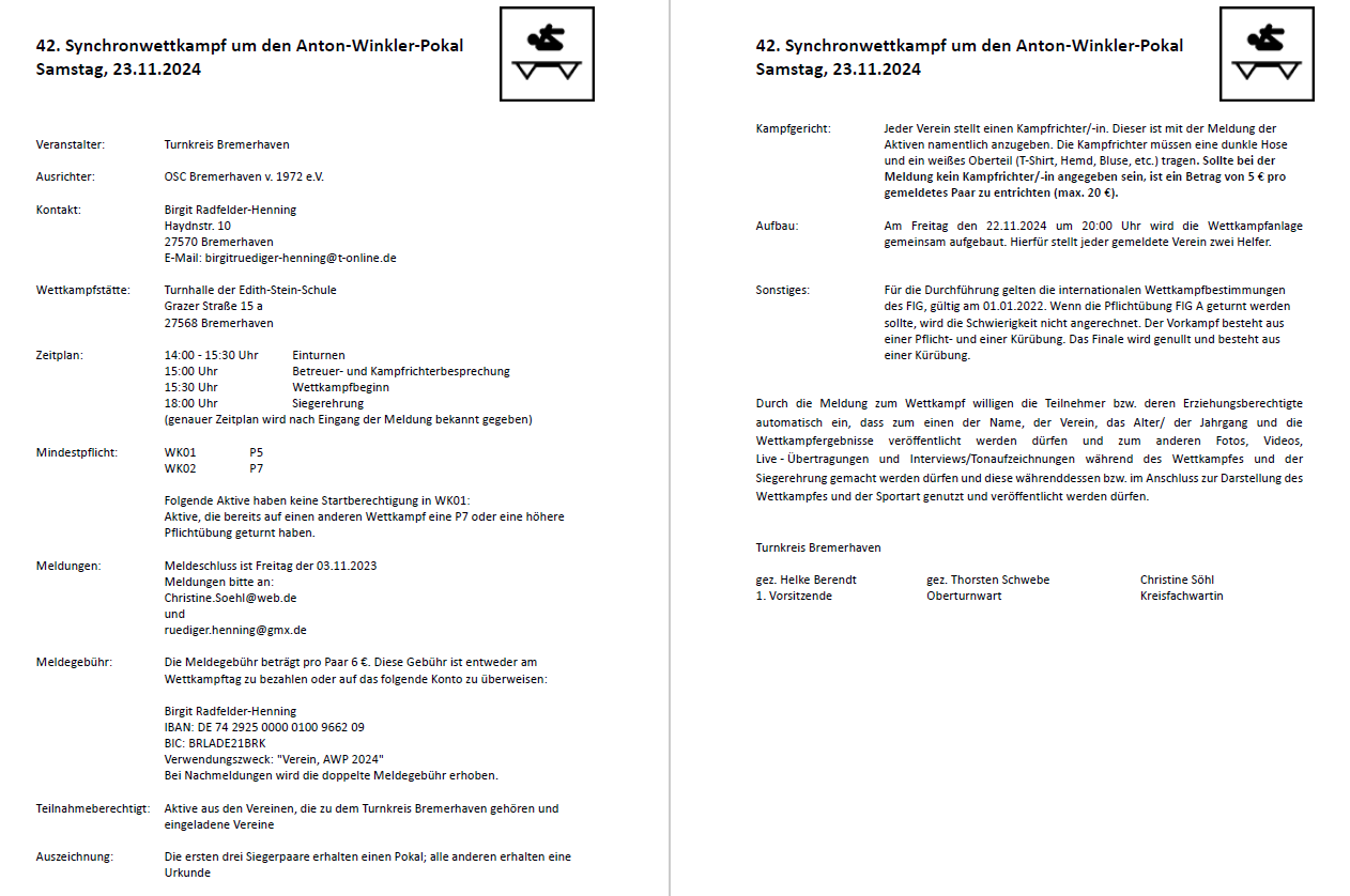 Anton-Winkler-Pokal 2024 Gerätturnen Ergebnislisten